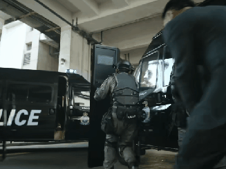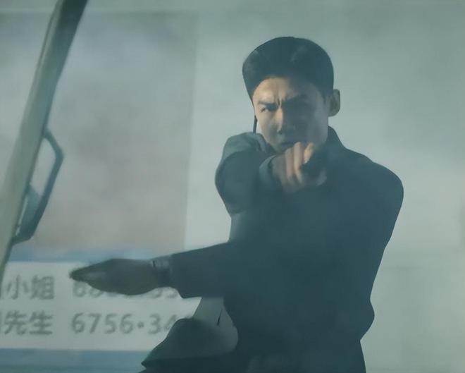预告片里他持枪与匪徒对战,眉头紧锁,身手利落果决,满脸杀气透着刑警的锐利、严肃。
