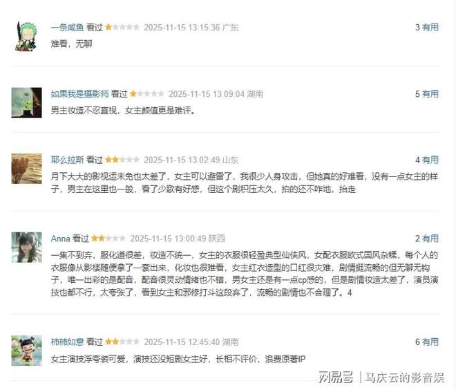 纵览这些差评,大多数都是指责该剧的男女主角的。有指责演技的,也有指责颜值的。显然,这部《勿扰飞升》并未满足仙侠剧爱好者们的审美诉求。从男女主角的颜值层面来讲,她们在这部戏当中的造型确实有些吃亏。咱们以往的仙侠剧,都是需要俊男靓女的。这次的《勿扰飞升》确实差点意思。