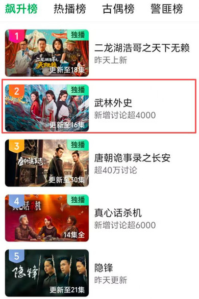 《武林外史》首播,拿下飙升榜第二,古龙武侠的号召力不逊色于当年。