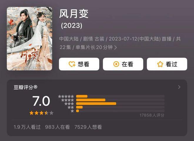 然而,从短剧具体的播出效果来看,这些上星短剧并未动辄涌现出红果们播放量动辄几千万、上亿的爆款作品,仅有《风月变》在豆瓣开分7分,其余作品皆因点评人数不足,并未开分。
