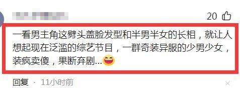 有网友直言,“一看男主角这劈头盖脸发型和半男半女的长相,就让人想起现在泛滥的综艺节目,一群奇装异服的少男少女,装疯卖傻,果断弃剧”。