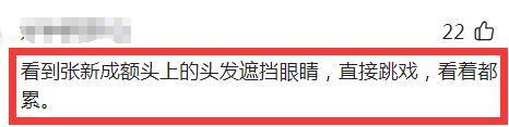 有网友说,“看到张新成额头上的头发遮挡眼睛,直接跳戏,看着都累”。
