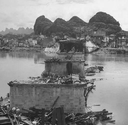 ▲1944年,中正桥(解放桥)在桂林保卫战中被炸毁