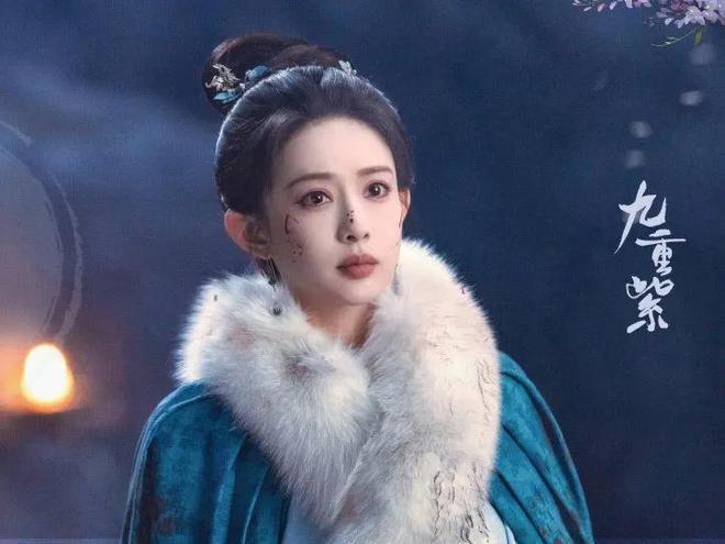 《九重紫》中孟子义凭借窦昭一角出圈,从天真到黑化、从破碎到重生的历程被孟子义富有层次感的演绎出来,人物的妆造变化也从少女时期的双丫髻到掌权后的高髻盘顶,高光时期战损妆的破碎美学强化角色的凄美与坚韧,“以妆叙事”的功能再次具象化展现。