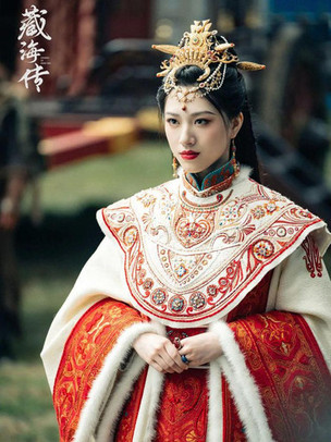 宋祖儿不愧是拥有一张为古偶而生的天选之脸——巴掌脸、杏仁眼、樱桃小嘴,完美适配汉代深闺美人人设。剧中她头戴“珍珠流苏髻”,身着“黑金婚服”“红色嫁衣”等惊艳造型,将汉代审美中的华丽与灵动完美融合。更有“城楼回眸”、“战损落泪”等多个名场面出圈,将角色的美貌和灵魂演绎的生动完美。