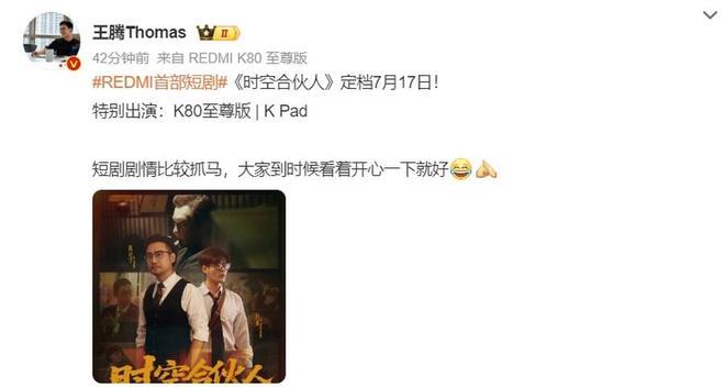 这部短剧的指定产品是REDMI刚刚发布的两款旗舰产品:K80至尊版和K Pad。据公开信息,《时空合伙人》于6月22日正式开机,执行导演为赖冠霖(非总导演),主演包括陈冠宁、舒童等,拍摄地点涵盖了重庆等地。