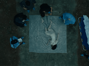 一具惨白的女尸从废弃的污水池中被捞出来,摆放在冷冰冰的塑料上面,死者的一只脚被平整的切断,死状凄惨而诡异,没有打码的镜头看着更添几分惊悚的氛围。