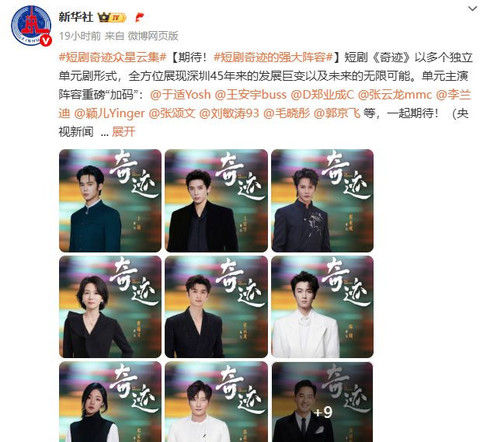 为纪念深圳经济特区建立45周年而拍摄的短剧《奇迹》被新华社亲自官宣,这一次演员阵容又迎来了一堆实力派大咖,而看完该剧所有物料后我想说:短剧要变天了。