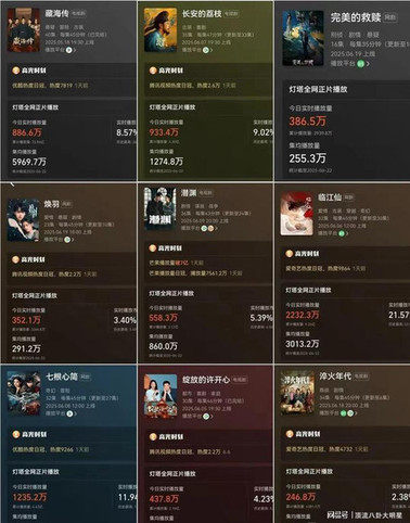 6月9日上映(总共36集,更新至24集)数据:集均播放量:860万,累计播放量2.11亿。