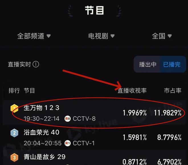 截至目前,也不止我兴奋,广大观众也已经用遥控器投了票。《生万物》开播之后,收视率直接飙升,一举拿下同时段全国电视剧收视第一的好成绩。