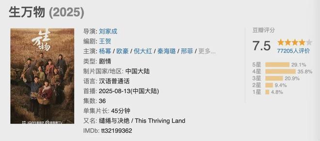 而昨天,这个剧在豆瓣上也正式出了评分,7.5分。