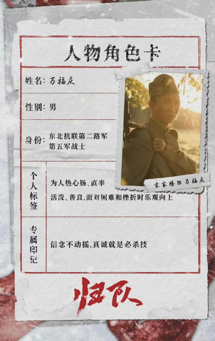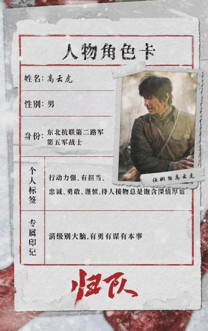 《归队》通过小人物视角展现民族气节,通过抗联小队在白山黑水间的密营战斗,冰天雪地中的生存挣扎,谱写了一曲气壮山河的英雄史诗。