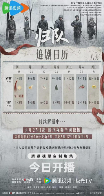 《归队》从今晚19:30起,CCTV-8黄金强档播出,腾讯视频全网独播,会员首更3集。