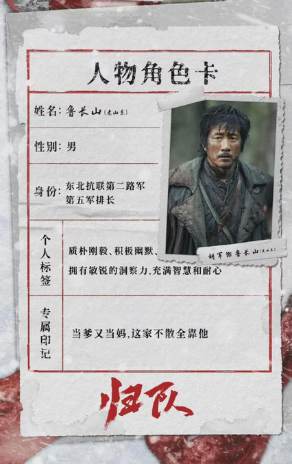 鲁长山是抗联部队排长,他是一位坚韧果敢的领导者,在小队里,他既当爹又当妈,为小队操碎了心。