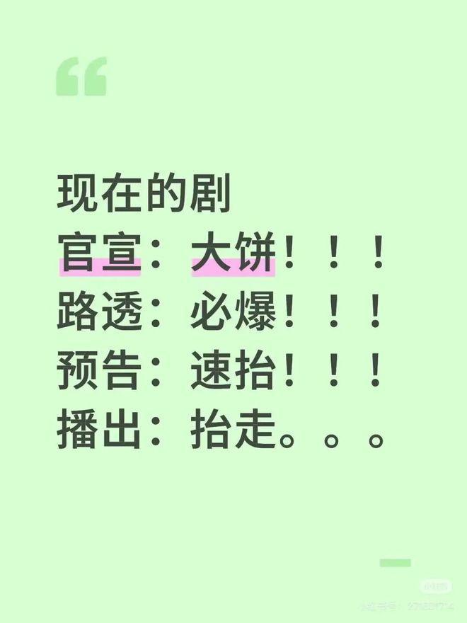 像一场预设好的营销大戏,从官宣到路透再到预告,每一步都是精心编排的“剧情节点”,目标是提前点燃市场热度,将观众的期待锁死在未播之前。剧集的命运,从诞生之初就被捆绑在这套宣传轨道上,疾驰驶向终点,容不得半点停顿。
