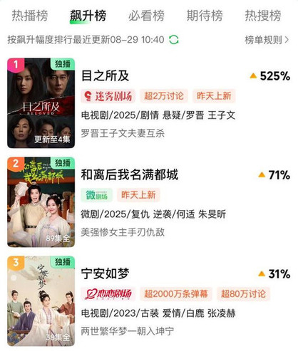 从目前这部剧超500%的飙升率来看,《目之所及》真的拿出了爆款的势头。