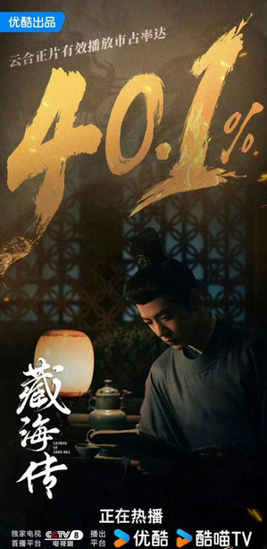 当时《藏海传》就是吸干大盘的存在,超点后最高市占率达到40.1%,以断层优势占据全网超三分之一市场份额。这部剧还是台网同播,除了优酷,还有CCTV-8、东方卫视、北京卫视、CCTV-1先后播出。云合的统计是不计入上星的播放率的,而且优酷平台日活用户基数一直较低,结果还逆袭成优酷首部云合占比超40%的上星剧,实力不一般。