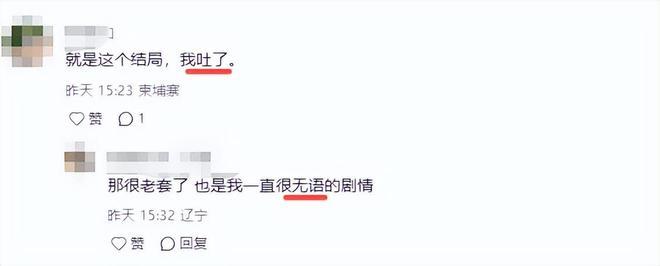 对于这样的结局不少观众都表示非常无语,甚至有观众看到这样剧情就要吐了。