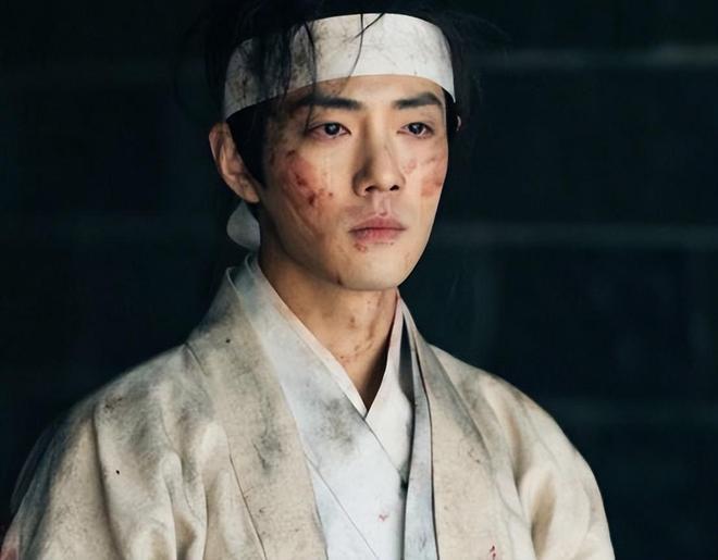 负伤以一对多,脸上的血迹和眼神中的杀意呼应,气场凌厉。
