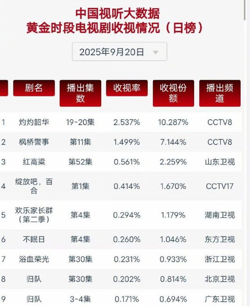 此前《生万物》以精彩的剧情一路领跑,成了央八三年收视之冠,本以为稳坐2025央八年冠之位,结果《灼灼韶华》霸气逆袭,首播峰值破2.8%,直接拿下全国收视第一。截至目前,《灼灼韶华》集均CVB达2.427%,超越《生万物》的2.388%,暂列央八2025年收视年冠。