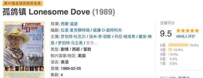 这部1989年的四集迷你剧,改编自普利策奖小说,豆瓣高达9.5,很多老影迷都把它奉为「西部剧天花板」。
